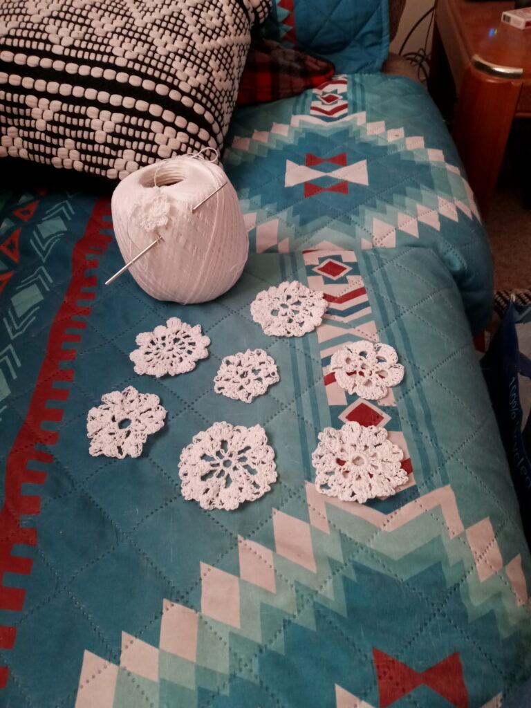 I was born in Espanola and raised in Abiquiu. My father was born, raised and lived in Abiquiu. I attended parochial and elementary school in Abiquiu and junior and high school in Espanola. I participated in archeological digs during the summer months while in high school with Charlie Carrillo. I received a master’s degree in Southwest Studies from New Mexico Highlands University. My mother taught me at a young age to embroider and my grandmother taught me to crochet. I am also a weaver, and my work was displayed at the New Mexico State Fair many years ago. I enjoy creating art through embroidery and crochet that people will enjoy.