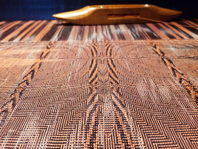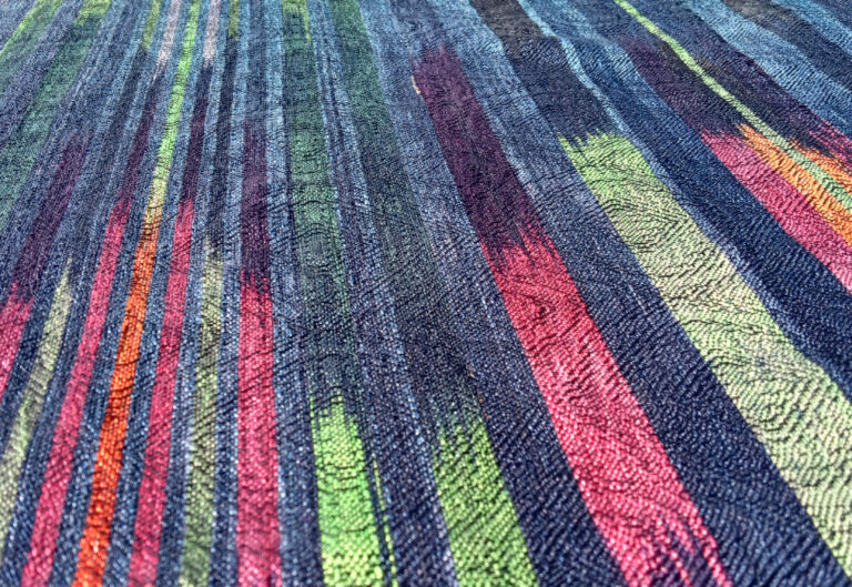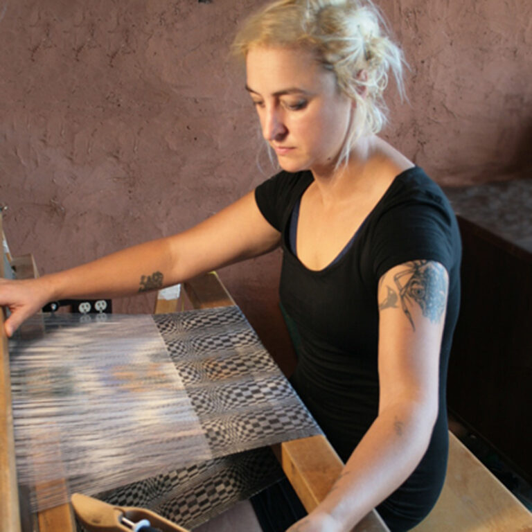 Pando Speer and Dain Daller are The Warp Zone. Their weaving incorporates ikat dye techniques paired shibori and a variety of multi-harness loom controlled patterns. This overlaying of multiple design elements creates the unique complexity and richness found in Warp Zone textiles. In their studio, cotton, silk, and linen yarns are treated with care and inspiration to become fine wearable art. The work of the Warp Zone has been shown both nationally and internationally, including The World Ikat Textile Symposium in 2016 in New Delhi, India and 2017 in Khon Kaen, Thailand. Pando and Dain will also be showing a selection of their unique up-cycled clothing items. They live and work in their completely handmade off-grid Earthship home and studio in Northern New Mexico.