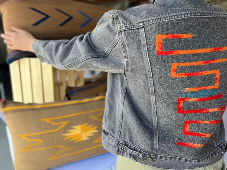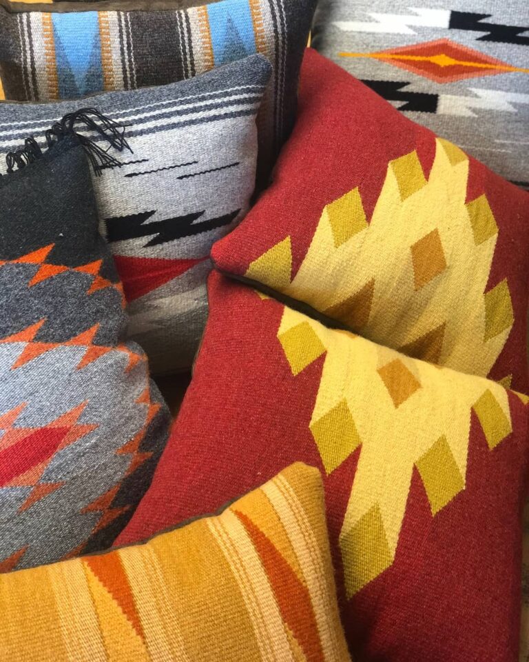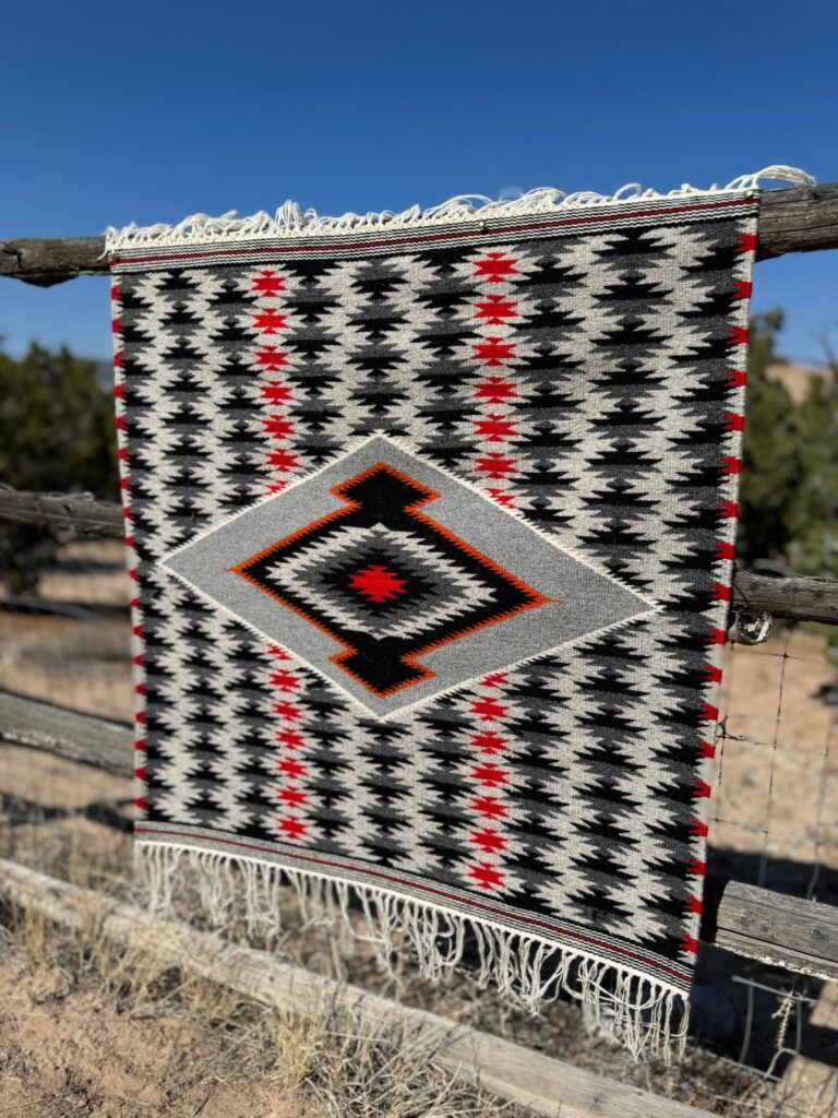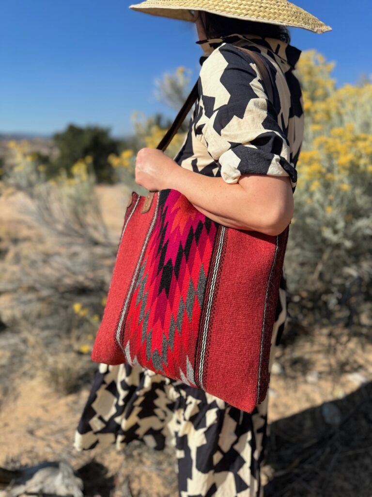 I started weaving soon after moving to northern New Mexico. What started as a “dare” to myself turned out to be my passion. My work blends traditional Rio Grande weaving elements with modern interpretations, creating pieces that combine timeless techniques with a contemporary flair. Each piece is entirely handcrafted: I weave, sew and often incorporating my own hand dyed “creations” into my designs.